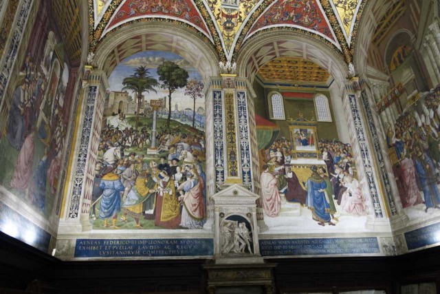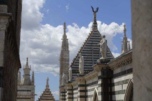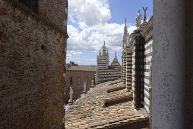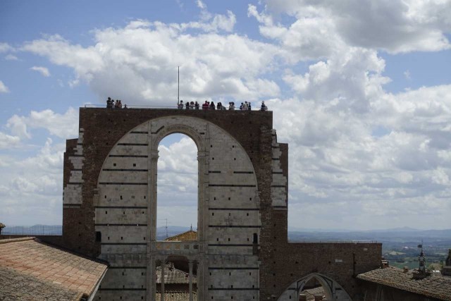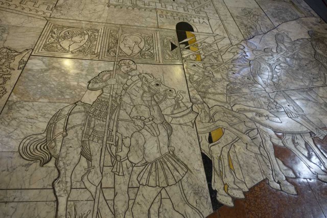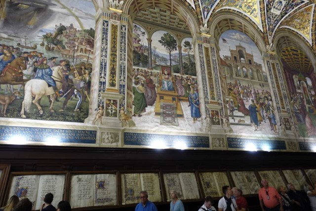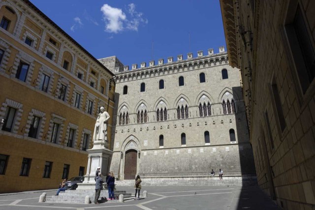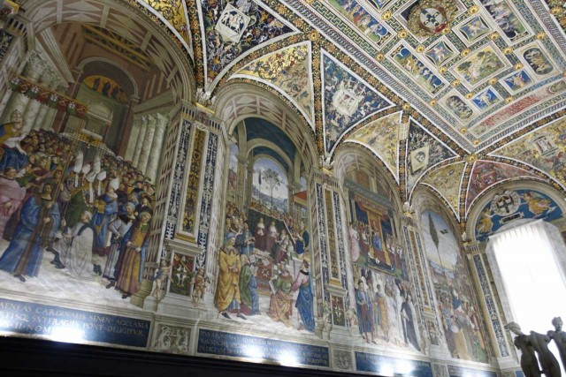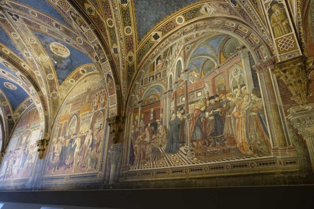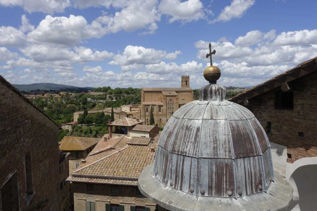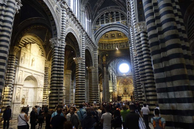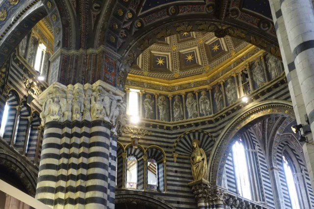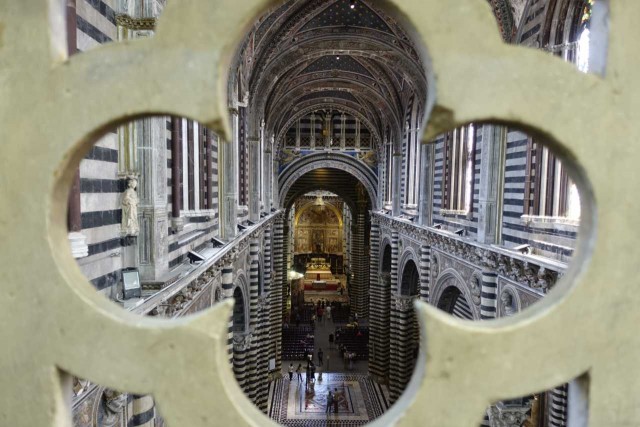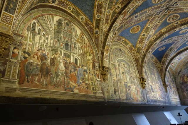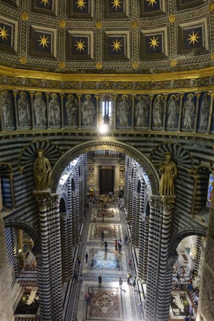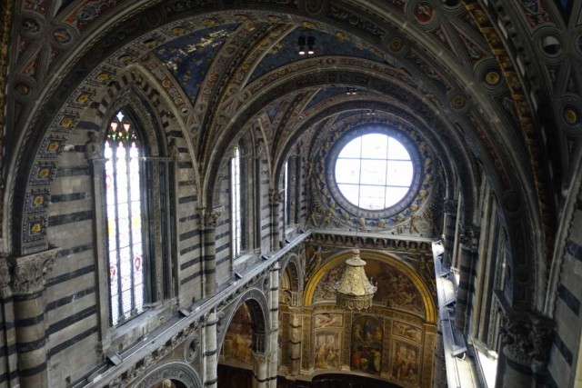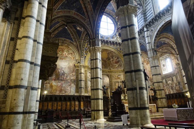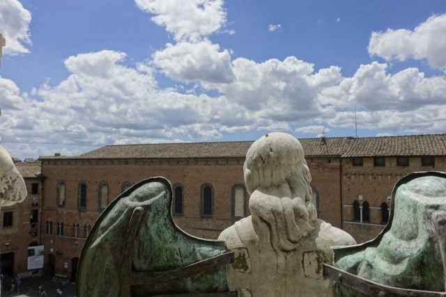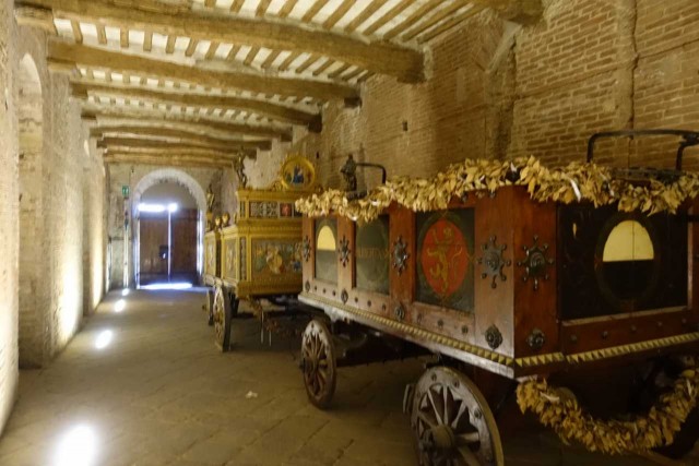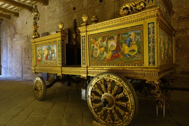 Zuvor haben wir das alte Hospital besucht - das aufgrund Hanglage drei Stöcke in die Tiefe reicht, eine Strasse im Inneren hat und reich verziert ist - inklusive Festwagen vom Palio.